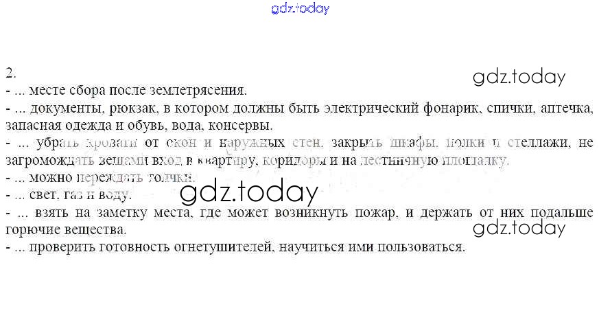 На страницах сайта gdz.today вы найдете учебный и вспомогательный материал, направленный на улучшения знаний школьной программы. ГДЗ - онлайн мир знаний Решение к теме 6. Правила безопасного поведения при землетрясении 2 Рабочей тетради по ОБЖ для 7 класса Егорова Лицей 2012