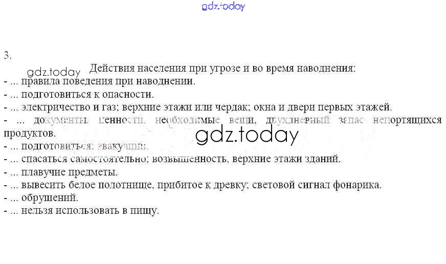 Ответы к Решение к теме 16. Рекомендации населению по действиям при угрозе и во время наводнения 3 Рабочей тетради по ОБЖ для 7 класса Егорова Лицей 2012