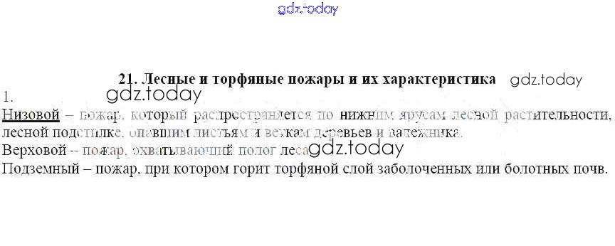На страницах сайта gdz.today вы найдете учебный и вспомогательный материал, направленный на улучшения знаний школьной программы. ГДЗ - онлайн мир знаний Решение к теме 21. Лесные и торфяные пожары и их характеристика 1 Рабочей тетради по ОБЖ для 7 класса Егорова Лицей 2012