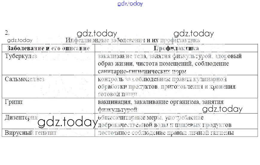 На страницах сайта gdz.today вы найдете учебный и вспомогательный материал, направленный на улучшения знаний школьной программы. ГДЗ - онлайн мир знаний Решение к теме 24. Противоэпидемические мероприятия и защита населения от инфекций 2 Рабочей тетради по ОБЖ для 7 класса Егорова Лицей 2012