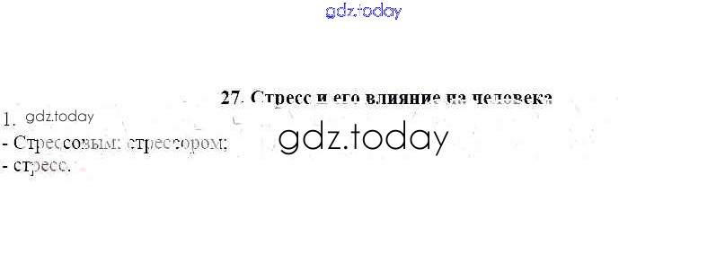 На страницах сайта gdz.today вы найдете учебный и вспомогательный материал, направленный на улучшения знаний школьной программы. ГДЗ - онлайн мир знаний Решение к теме 27. Стресс и его влияние на человека 1 Рабочей тетради по ОБЖ для 7 класса Егорова Лицей 2012