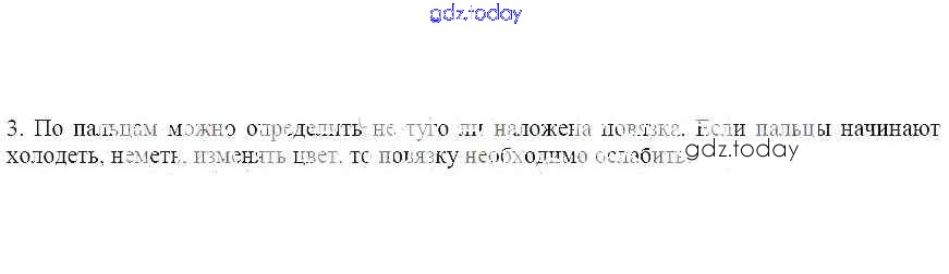 На страницах сайта gdz.today вы найдете учебный и вспомогательный материал, направленный на улучшения знаний школьной программы. ГДЗ - онлайн мир знаний Решение к теме 31. Первая медицинская помощь при сильном кровотечении 3 Рабочей тетради по ОБЖ для 7 класса Егорова Лицей 2012