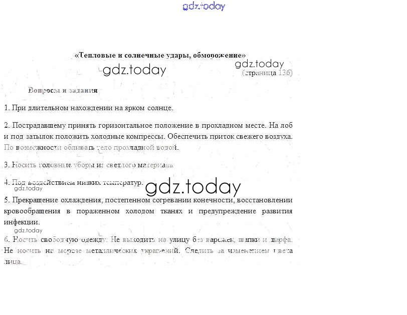 На страницах сайта gdz.today вы найдете учебный и вспомогательный материал, направленный на улучшения знаний школьной программы. ГДЗ - онлайн мир знаний Страницы (решение) 136 Учебнику по ОБЖ для 7 класса Фролов, Юрьева Дрофа 2018
