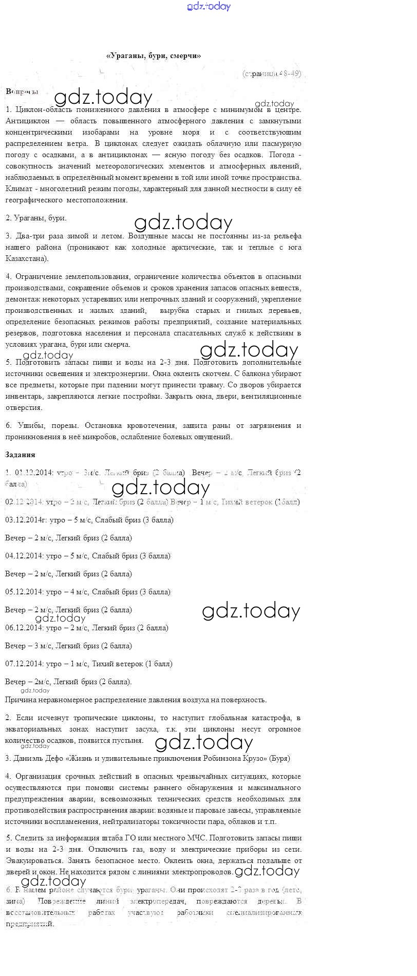 На страницах сайта gdz.today вы найдете учебный и вспомогательный материал, направленный на улучшения знаний школьной программы. ГДЗ - онлайн мир знаний Страницы (решение) 48-49 Учебнику по ОБЖ для 7 класса Фролов, Юрьева Дрофа 2018