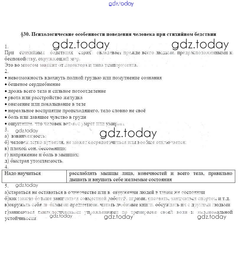 На страницах сайта gdz.today вы найдете учебный и вспомогательный материал, направленный на улучшения знаний школьной программы. ГДЗ - онлайн мир знаний Решение к параграфам §30 Рабочей тетради по ОБЖ для 7 класса Латчук, Миронов Дрофа Вертикаль 2017