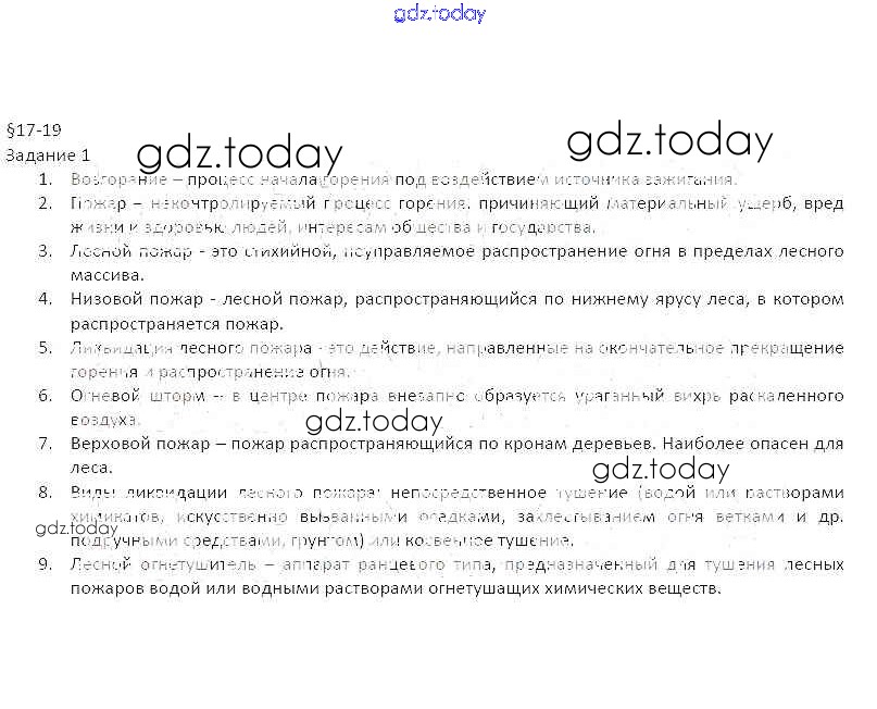 На страницах сайта gdz.today вы найдете учебный и вспомогательный материал, направленный на улучшения знаний школьной программы. ГДЗ - онлайн мир знаний Решение к §17-19 1 Рабочей тетради по ОБЖ для 7 класса Подолян Дрофа 2017