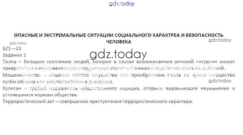 На страницах сайта gdz.today вы найдете учебный и вспомогательный материал, направленный на улучшения знаний школьной программы. ГДЗ - онлайн мир знаний Решение к §21-22 1 Рабочей тетради по ОБЖ для 7 класса Подолян Дрофа 2017