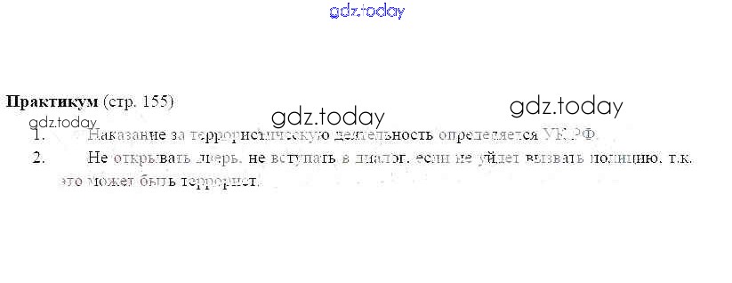 На страницах сайта gdz.today вы найдете учебный и вспомогательный материал, направленный на улучшения знаний школьной программы. ГДЗ - онлайн мир знаний Страницы (решение) 155 Учебнику по ОБЖ для 7 класса Смирнов, Хренников Просвещение 2018