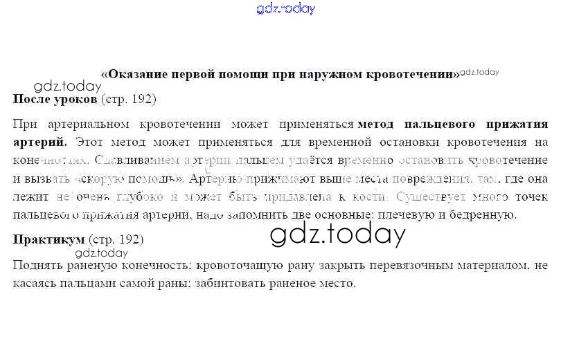 Ответы к Страницы (решение) 192 Учебнику по ОБЖ для 7 класса Смирнов, Хренников Просвещение 2018
