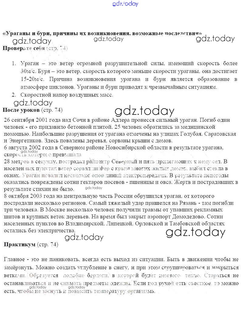 На страницах сайта gdz.today вы найдете учебный и вспомогательный материал, направленный на улучшения знаний школьной программы. ГДЗ - онлайн мир знаний Страницы (решение) 74 Учебнику по ОБЖ для 7 класса Смирнов, Хренников Просвещение 2018