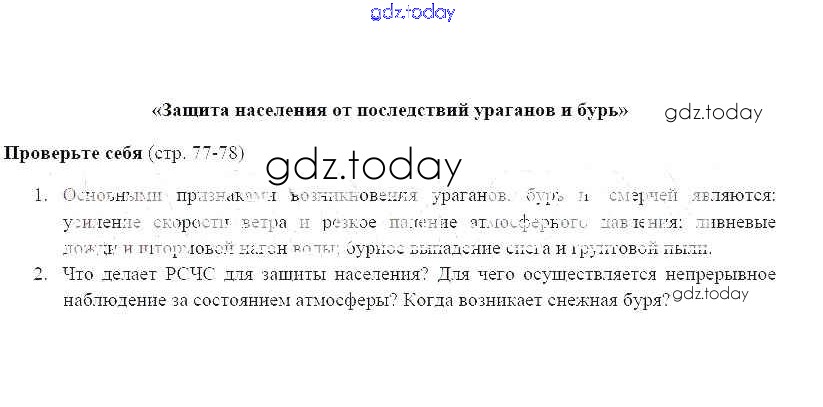На страницах сайта gdz.today вы найдете учебный и вспомогательный материал, направленный на улучшения знаний школьной программы. ГДЗ - онлайн мир знаний Страницы (решение) 77-78 Учебнику по ОБЖ для 7 класса Смирнов, Хренников Просвещение 2018
