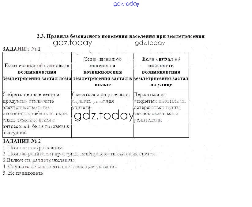 На страницах сайта gdz.today вы найдете учебный и вспомогательный материал, направленный на улучшения знаний школьной программы. ГДЗ - онлайн мир знаний Решение к главе 2 2.3 Рабочей тетради по ОБЖ для 7 класса Смирнов, Хренников Просвещение 2018