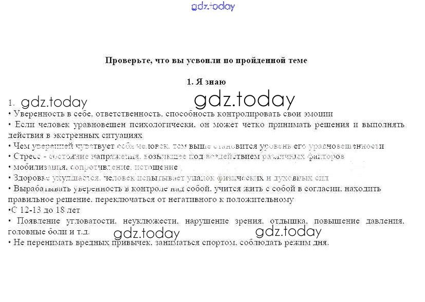 На страницах сайта gdz.today вы найдете учебный и вспомогательный материал, направленный на улучшения знаний школьной программы. ГДЗ - онлайн мир знаний Решение к главе 7 Проверьте свои знания Рабочей тетради по ОБЖ для 7 класса Смирнов, Хренников Просвещение 2018