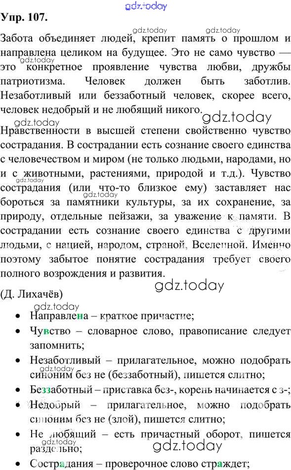 Ответы к Решения к упражнениям 107 Учебнику по Русскому языку для 7 класса Александрова, Загоровская Просвещение 2020