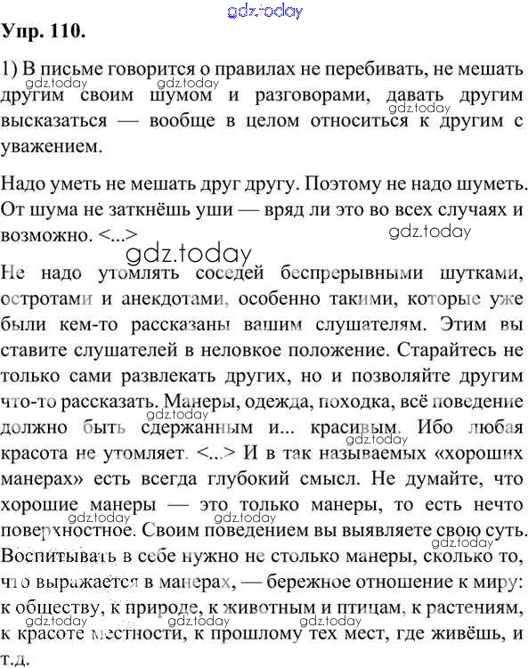 На страницах сайта gdz.today вы найдете учебный и вспомогательный материал, направленный на улучшения знаний школьной программы. ГДЗ - онлайн мир знаний Решения к упражнениям 110 Учебнику по Русскому языку для 7 класса Александрова, Загоровская Просвещение 2020
