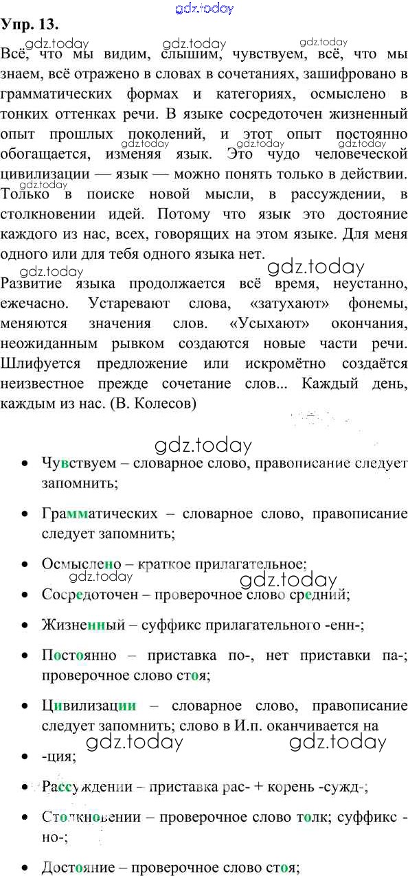 На страницах сайта gdz.today вы найдете учебный и вспомогательный материал, направленный на улучшения знаний школьной программы. ГДЗ - онлайн мир знаний Решения к упражнениям 13 Учебнику по Русскому языку для 7 класса Александрова, Загоровская Просвещение 2020