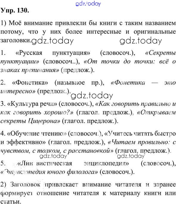 Ответы к Решения к упражнениям 130 Учебнику по Русскому языку для 7 класса Александрова, Загоровская Просвещение 2020