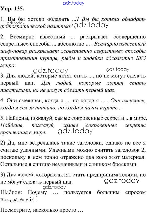 На страницах сайта gdz.today вы найдете учебный и вспомогательный материал, направленный на улучшения знаний школьной программы. ГДЗ - онлайн мир знаний Решения к упражнениям 135 Учебнику по Русскому языку для 7 класса Александрова, Загоровская Просвещение 2020