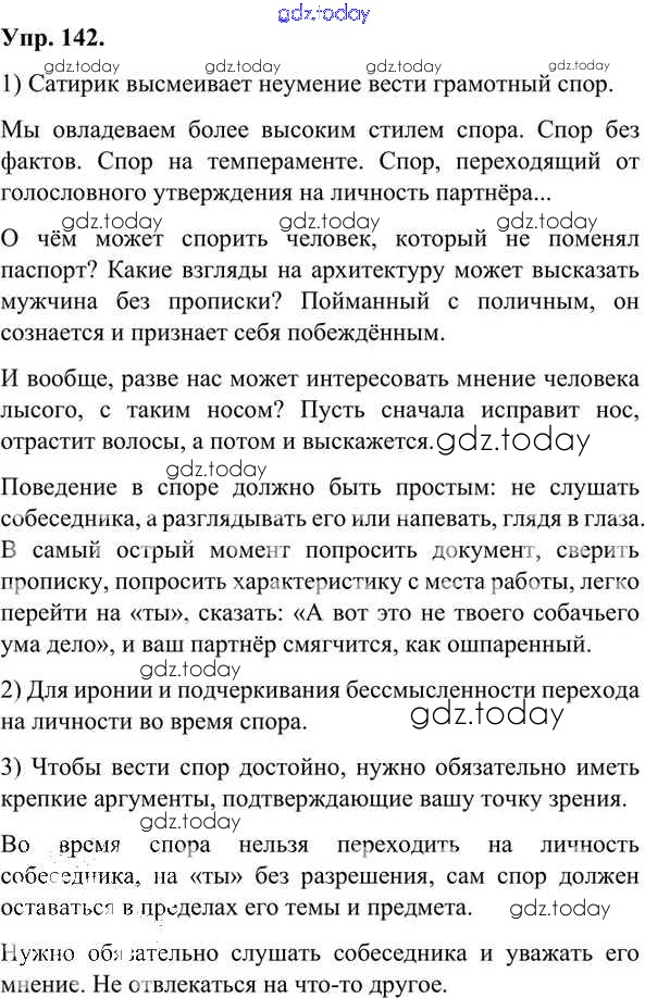 Ответы к Решения к упражнениям 142 Учебнику по Русскому языку для 7 класса Александрова, Загоровская Просвещение 2020