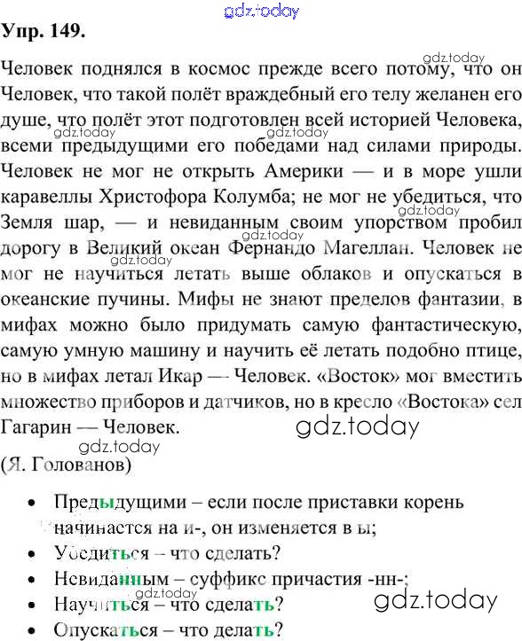 Ответы к Решения к упражнениям 149 Учебнику по Русскому языку для 7 класса Александрова, Загоровская Просвещение 2020
