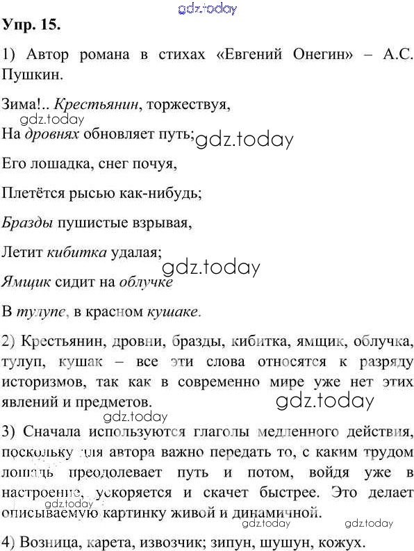 Ответы к Решения к упражнениям 15 Учебнику по Русскому языку для 7 класса Александрова, Загоровская Просвещение 2020
