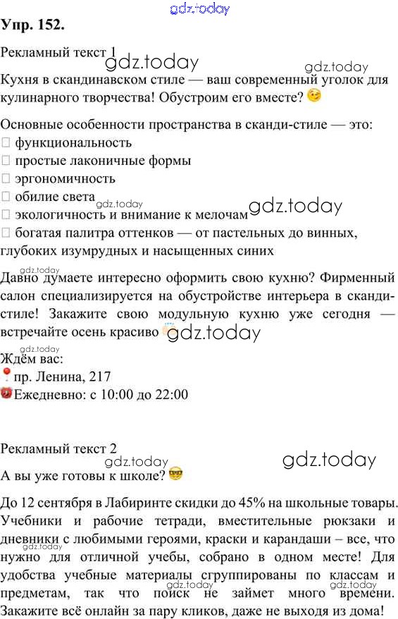 На страницах сайта gdz.today вы найдете учебный и вспомогательный материал, направленный на улучшения знаний школьной программы. ГДЗ - онлайн мир знаний Решения к упражнениям 152 Учебнику по Русскому языку для 7 класса Александрова, Загоровская Просвещение 2020