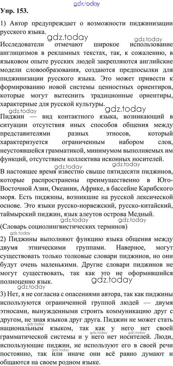 На страницах сайта gdz.today вы найдете учебный и вспомогательный материал, направленный на улучшения знаний школьной программы. ГДЗ - онлайн мир знаний Решения к упражнениям 153 Учебнику по Русскому языку для 7 класса Александрова, Загоровская Просвещение 2020