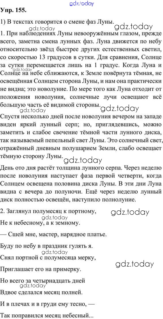 На страницах сайта gdz.today вы найдете учебный и вспомогательный материал, направленный на улучшения знаний школьной программы. ГДЗ - онлайн мир знаний Решения к упражнениям 155 Учебнику по Русскому языку для 7 класса Александрова, Загоровская Просвещение 2020