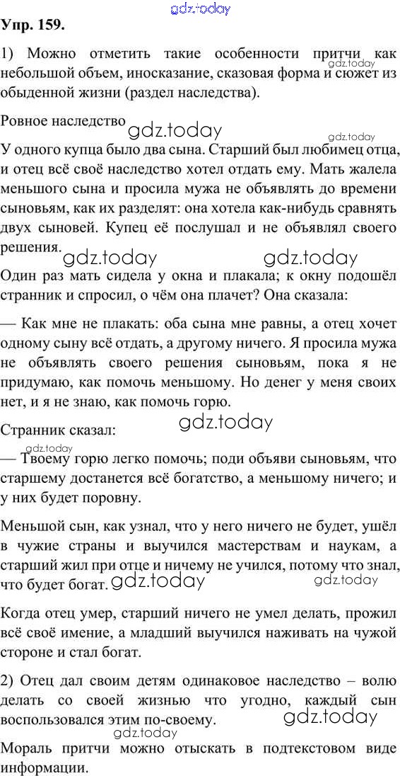 Ответы к Решения к упражнениям 159 Учебнику по Русскому языку для 7 класса Александрова, Загоровская Просвещение 2020