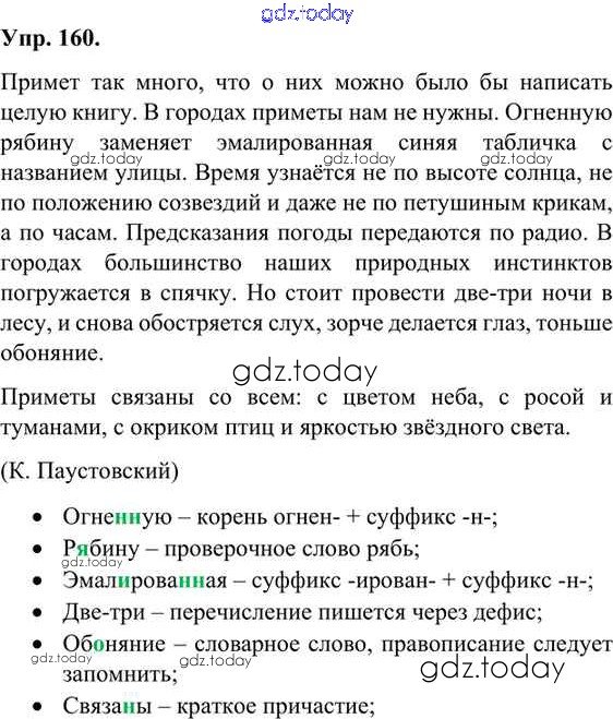 На страницах сайта gdz.today вы найдете учебный и вспомогательный материал, направленный на улучшения знаний школьной программы. ГДЗ - онлайн мир знаний Решения к упражнениям 160 Учебнику по Русскому языку для 7 класса Александрова, Загоровская Просвещение 2020