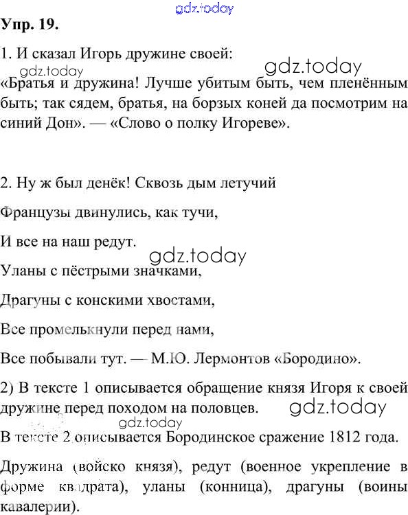 На страницах сайта gdz.today вы найдете учебный и вспомогательный материал, направленный на улучшения знаний школьной программы. ГДЗ - онлайн мир знаний Решения к упражнениям 19 Учебнику по Русскому языку для 7 класса Александрова, Загоровская Просвещение 2020