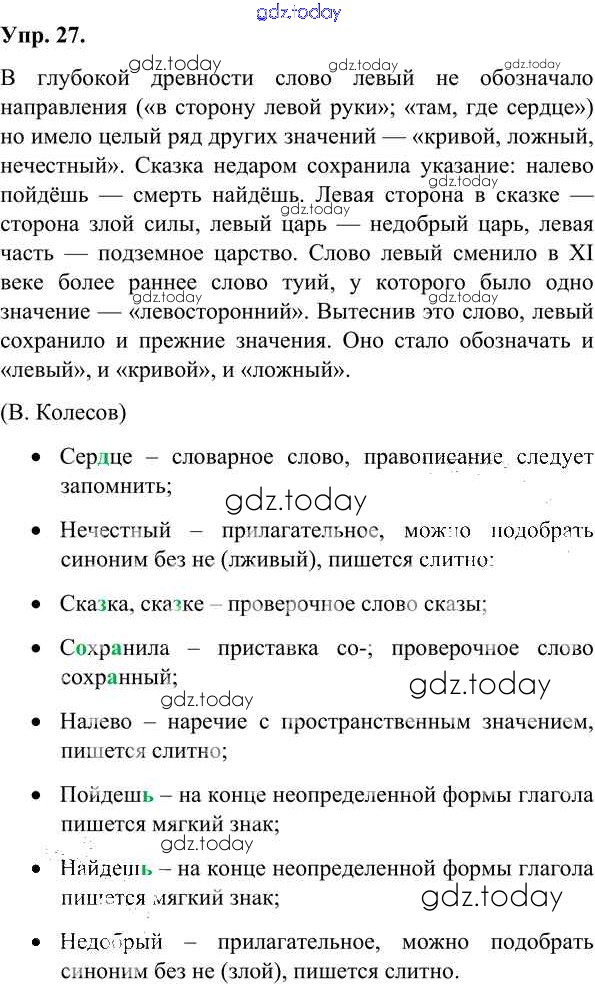 На страницах сайта gdz.today вы найдете учебный и вспомогательный материал, направленный на улучшения знаний школьной программы. ГДЗ - онлайн мир знаний Решения к упражнениям 27 Учебнику по Русскому языку для 7 класса Александрова, Загоровская Просвещение 2020
