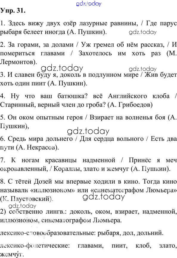 На страницах сайта gdz.today вы найдете учебный и вспомогательный материал, направленный на улучшения знаний школьной программы. ГДЗ - онлайн мир знаний Решения к упражнениям 31 Учебнику по Русскому языку для 7 класса Александрова, Загоровская Просвещение 2020