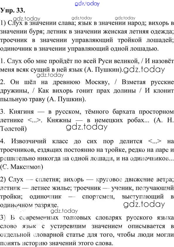 Ответы к Решения к упражнениям 33 Учебнику по Русскому языку для 7 класса Александрова, Загоровская Просвещение 2020