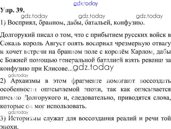 Ответы к Решения к упражнениям 39 Учебнику по Русскому языку для 7 класса Александрова, Загоровская Просвещение 2020