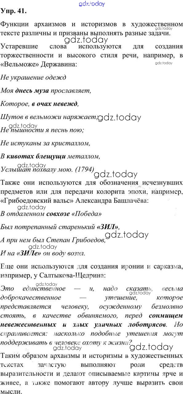 Ответы к Решения к упражнениям 41 Учебнику по Русскому языку для 7 класса Александрова, Загоровская Просвещение 2020