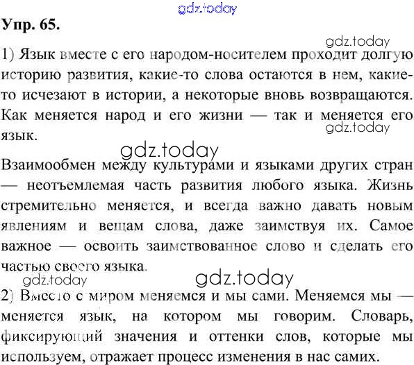 На страницах сайта gdz.today вы найдете учебный и вспомогательный материал, направленный на улучшения знаний школьной программы. ГДЗ - онлайн мир знаний Решения к упражнениям 65 Учебнику по Русскому языку для 7 класса Александрова, Загоровская Просвещение 2020