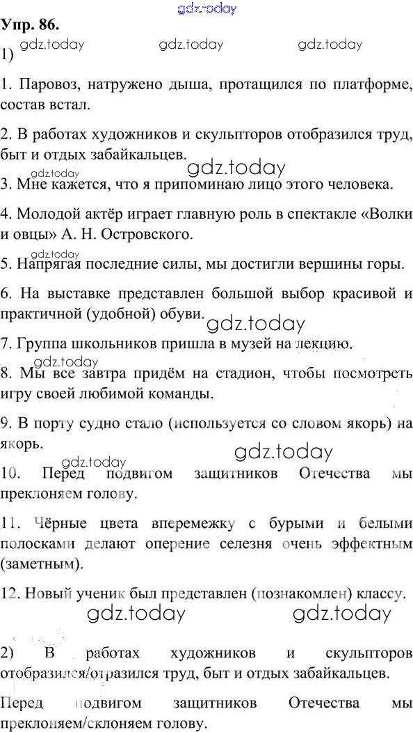 Ответы к Решения к упражнениям 86 Учебнику по Русскому языку для 7 класса Александрова, Загоровская Просвещение 2020