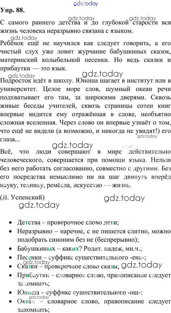 Ответы к Решения к упражнениям 88 Учебнику по Русскому языку для 7 класса Александрова, Загоровская Просвещение 2020