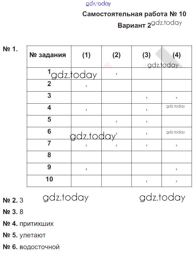 На страницах сайта gdz.today вы найдете учебный и вспомогательный материал, направленный на улучшения знаний школьной программы. ГДЗ - онлайн мир знаний СР-10. Варианты Решение к самостоятельным работам 2 Рабочей тетради по Русскому языку для 7 класса Александров, Александрова Национальное образование 2018