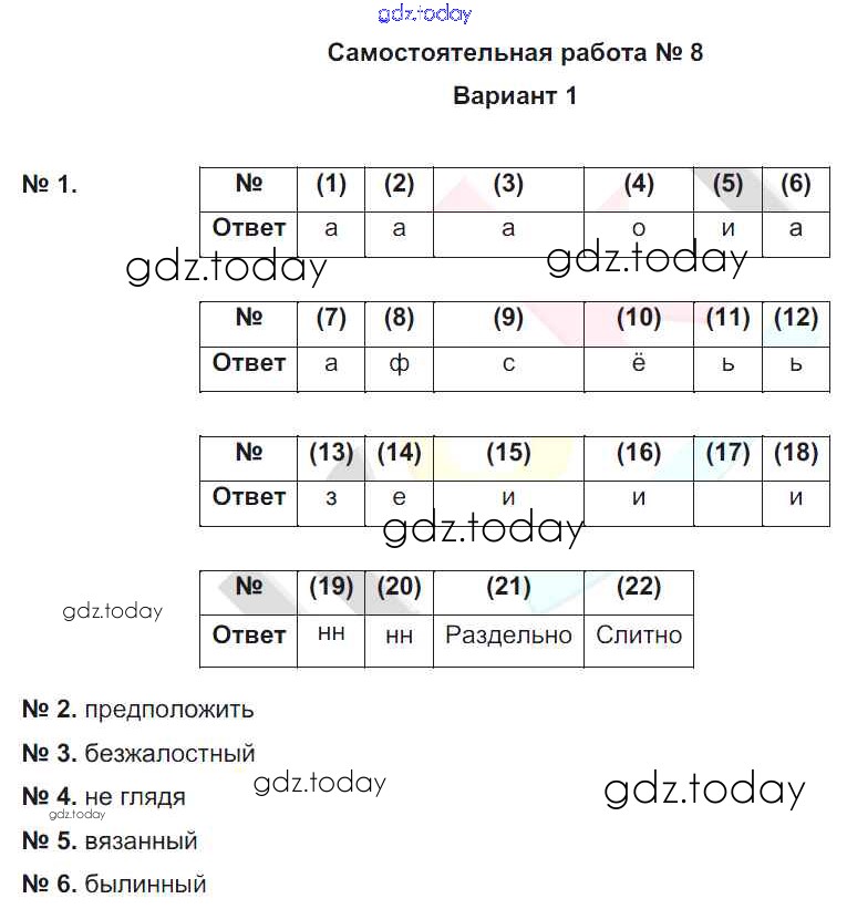 Ответы к СР-8. Варианты Решение к самостоятельным работам 1 Рабочей тетради по Русскому языку для 7 класса Александров, Александрова Национальное образование 2018