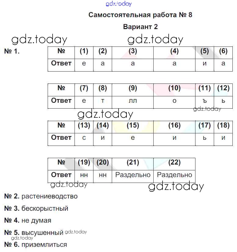Ответы к СР-8. Варианты Решение к самостоятельным работам 2 Рабочей тетради по Русскому языку для 7 класса Александров, Александрова Национальное образование 2018