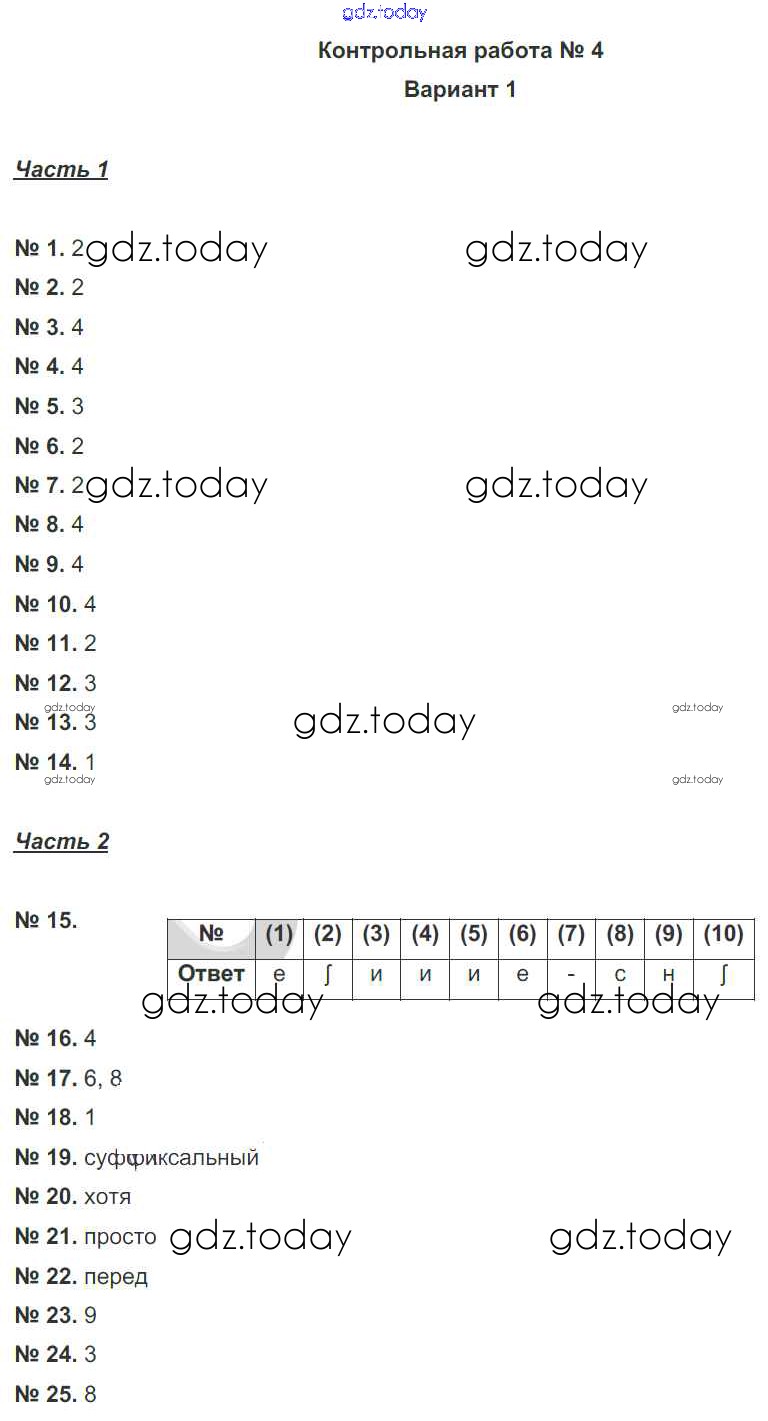 Ответы к КР-4. Варианты Решение к контрольным работам 1 Рабочей тетради по Русскому языку для 7 класса Александров, Александрова Национальное образование 2018