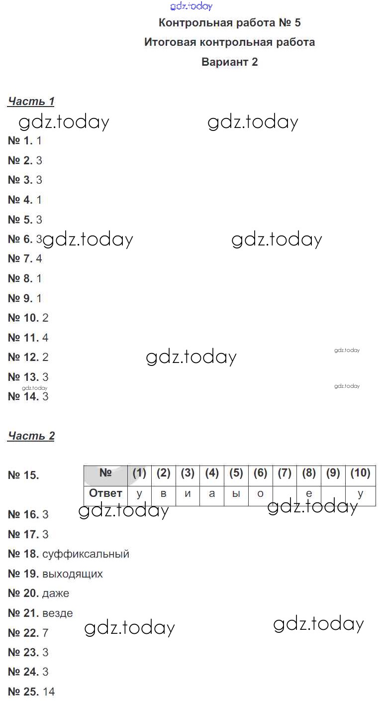 Ответы к КР-5. Варианты Решение к контрольным работам 2 Рабочей тетради по Русскому языку для 7 класса Александров, Александрова Национальное образование 2018