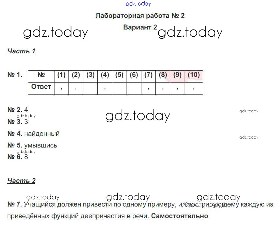 Ответы к Лабораторные работы 2. Варианты Решение к лабораторным работам 2 Рабочей тетради по Русскому языку для 7 класса Александров, Александрова Национальное образование 2018