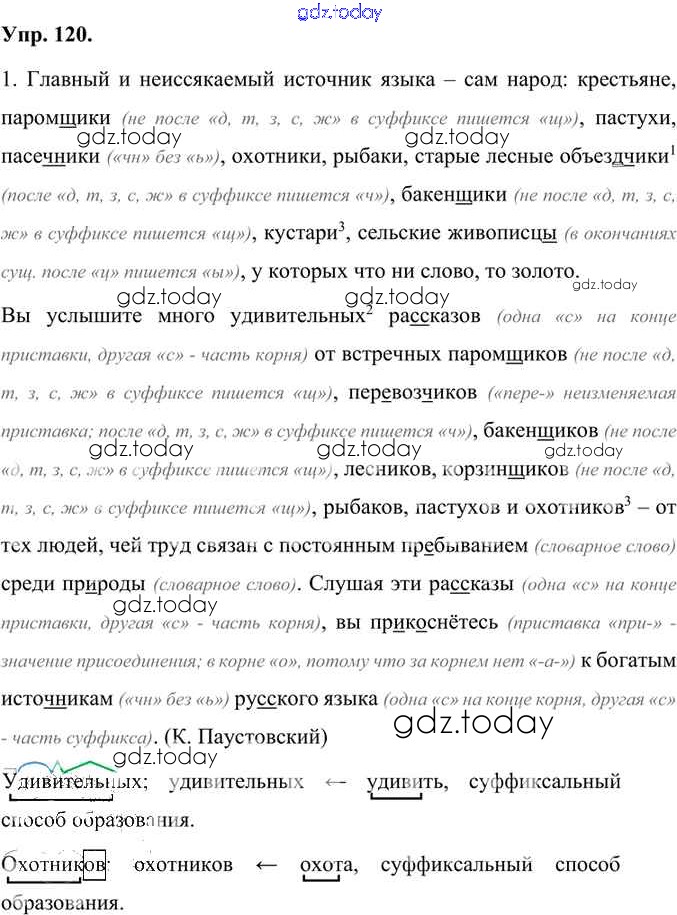 На страницах сайта gdz.today вы найдете учебный и вспомогательный материал, направленный на улучшения знаний школьной программы. ГДЗ - онлайн мир знаний Упражнения Часть 1 (решение) 120 Учебнику по Русскому языку для 7 класса Быстрова, Кибирева Русское слово Инновационная школа 2019