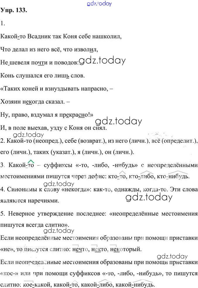 На страницах сайта gdz.today вы найдете учебный и вспомогательный материал, направленный на улучшения знаний школьной программы. ГДЗ - онлайн мир знаний Упражнения Часть 1 (решение) 133 Учебнику по Русскому языку для 7 класса Быстрова, Кибирева Русское слово Инновационная школа 2019