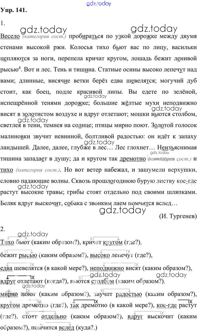 На страницах сайта gdz.today вы найдете учебный и вспомогательный материал, направленный на улучшения знаний школьной программы. ГДЗ - онлайн мир знаний Упражнения Часть 1 (решение) 141 Учебнику по Русскому языку для 7 класса Быстрова, Кибирева Русское слово Инновационная школа 2019