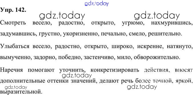 На страницах сайта gdz.today вы найдете учебный и вспомогательный материал, направленный на улучшения знаний школьной программы. ГДЗ - онлайн мир знаний Упражнения Часть 1 (решение) 142 Учебнику по Русскому языку для 7 класса Быстрова, Кибирева Русское слово Инновационная школа 2019