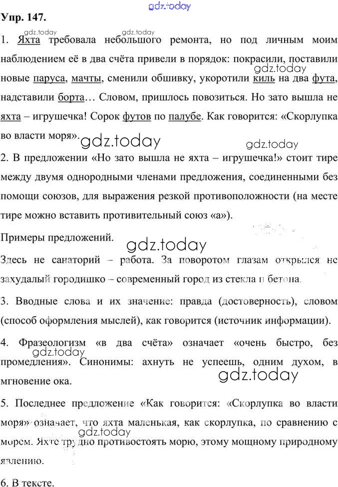 На страницах сайта gdz.today вы найдете учебный и вспомогательный материал, направленный на улучшения знаний школьной программы. ГДЗ - онлайн мир знаний Упражнения Часть 1 (решение) 147 Учебнику по Русскому языку для 7 класса Быстрова, Кибирева Русское слово Инновационная школа 2019